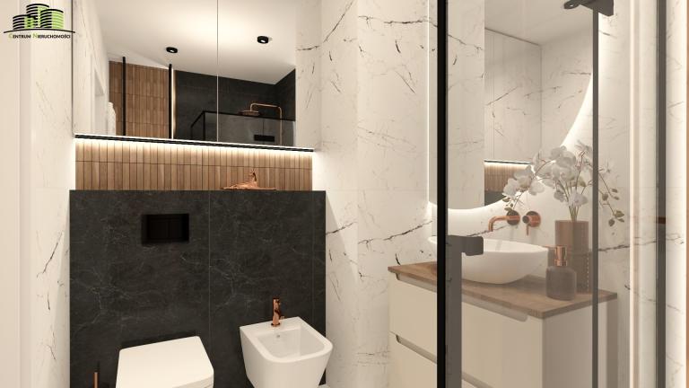 nowoczesna łazienka z dużą kabiną prysznicową oraz bidetem