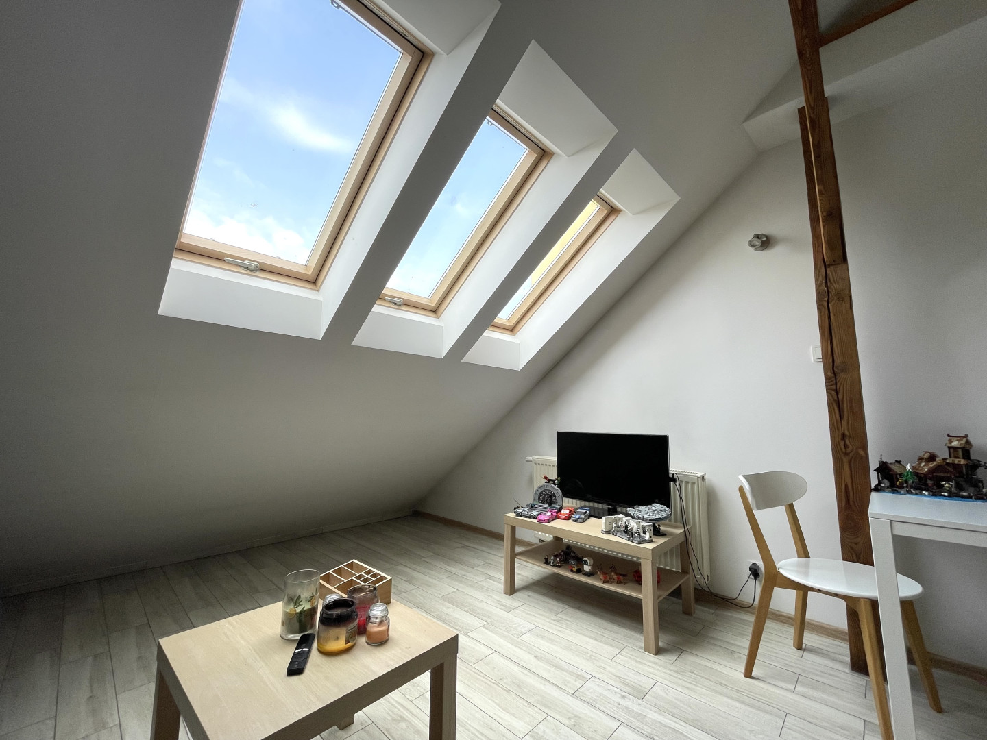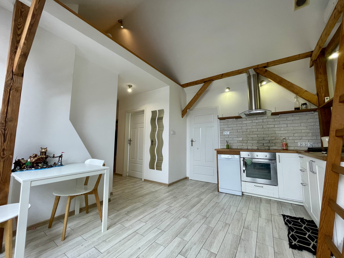 Mieszkanie znajduje się na III piętrze w odrestaurowanej kamienicy z 1952 roku w Centrum. Powierzchnia użytkowa mieszkania według aktu wynosi 36,57m2, natomiast rzeczywista powierzchnia po podłodze jest większa i wynosi ok. 65,9m2, ze względu na niewliczone do metrażu metry pod skosami. W skład nieruchomości wchodzą: