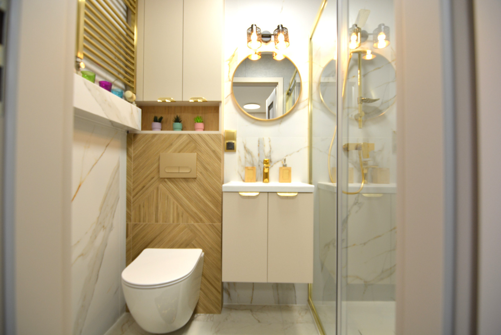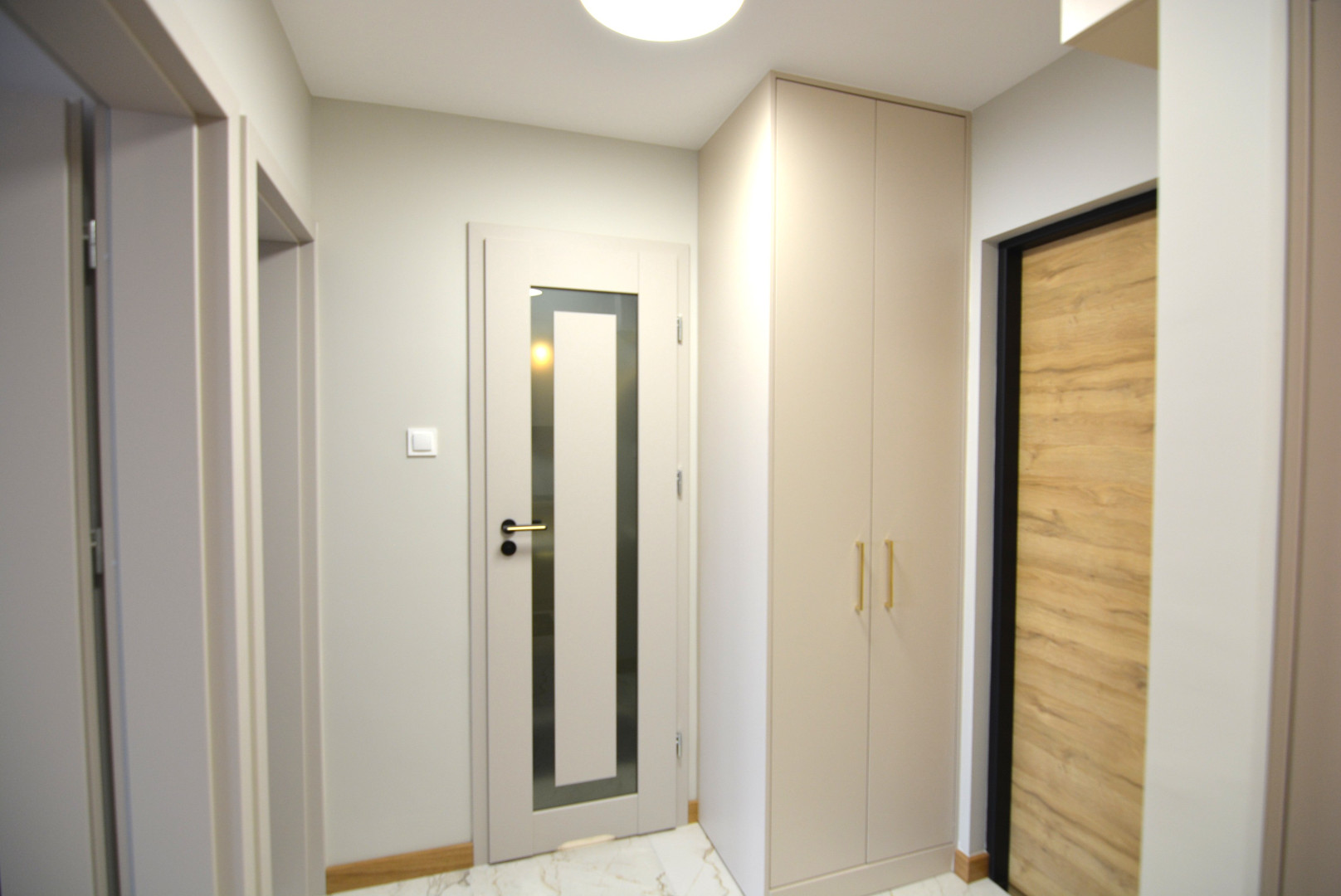 -korytarz z szafą w zabudowie, a w niej pralka