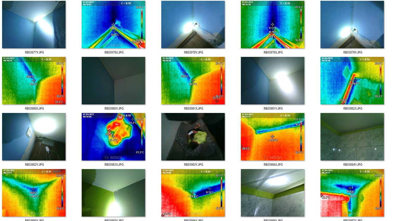 Zmierzenie kamerą termowizyjna szczelności cieplnej, mostków cieplnych, pleśni wilgotności, wilgoci.