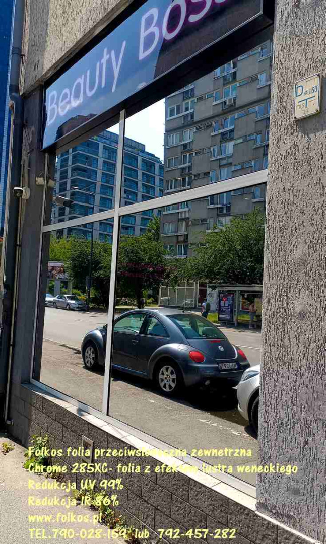 Folia przeciwsłoneczna w 100% zaciemniająca -występuje w 2-ch wersjach lustro-biały mat oraz lustro czarny mat -redukcja UV99%, redukcja IR 99%, redukcja rażenia słonecznego 100%