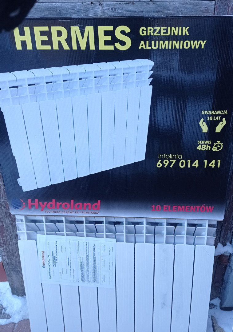 grzejnik aluminiowy,nowy,10-cio żeberkowy,podłączenie boczne,rozstaw podłączenia 50cm,wymiary jak na zdjęciu ,szerokość zestawu niecałe 80cm.Mam 10 takich zestawów.Możliwa wysyłka.Nie odpowiadam na smsy