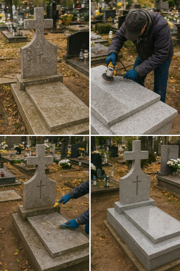 • Polerowanie, impregnacja, pastowanie i odnowienie nagrobka.